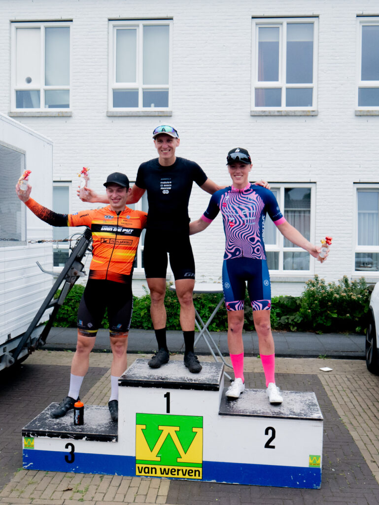 OLDEBROEK – De Multifence MTB Streetrace Oldebroek kende een schitterende finale bij de mannen 19+. Er werd snoeihard gereden, de broers van de Kruisweg Dennis en Raymond meden de strijd niet. Mede door het rijden van Raymond ontstond er een kopgroep van vijf met Jeroen van Eck uit Malden en Yaël Plas uit Apeldoorn, Dennis van de Kruisweg uit ’t Loo en Dylan Schra uit Staphorst. Halverwege de wedstrijd brak de kopgroep. En gingen drie coureurs er van door, Jeroen van Eck, Yaël Plas en Raymond van de Kruisweg. Op de finish was Jeroen van Eck de snelste, Yaël Plas tweede en Raymond van de Kruisweg derde. Dennis van de Kruisweg finishte op vier en Dylan Schra op vijf. Organisator en deelnemer Derk Jan van Putten uit ’t Harde werd achtste.